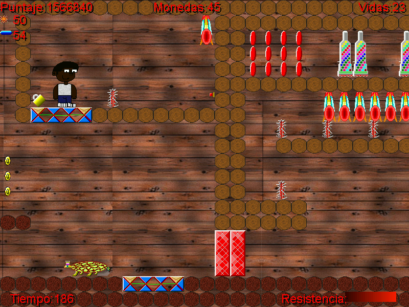 El juego contiene unos 40 niveles total, más o menos unos 30 en el modo historia normal y unos más al final de yapa (Los normales los hizo prácticamente todos mi hermano y son sensatos mientras que los de yapa los hice yo y no tienen ningún sentido), y 4 dificultades. Además los niveles están clasificados entre distintos mundos que el protagonista va atravesando en sucesión uno tras otro (cada mundo tiene su propia ambientación en cuanto a estilo del nivel y de gráficos): 'Clásico', Bosque, Playa, Barcos, Cuevas de lava.